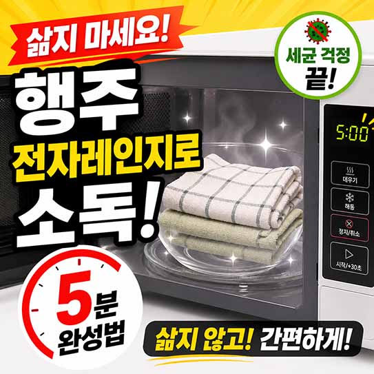 주방 위생의 핵심인 행주, 하지만 조금만 방치해도 금방 퀴퀴한 냄새가 나고 세균이 번식하기 쉽습니다. 제대로 소독하려면 펄펄 끓는 물에 삶는 게 가장 좋지만, 바쁜 일상 속에서 매일 삶기란 여간 번거로운 일이 아니죠. 😊